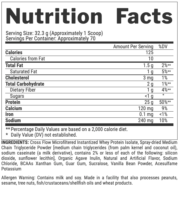 • 25g of instantized whey isolate protein per serving
