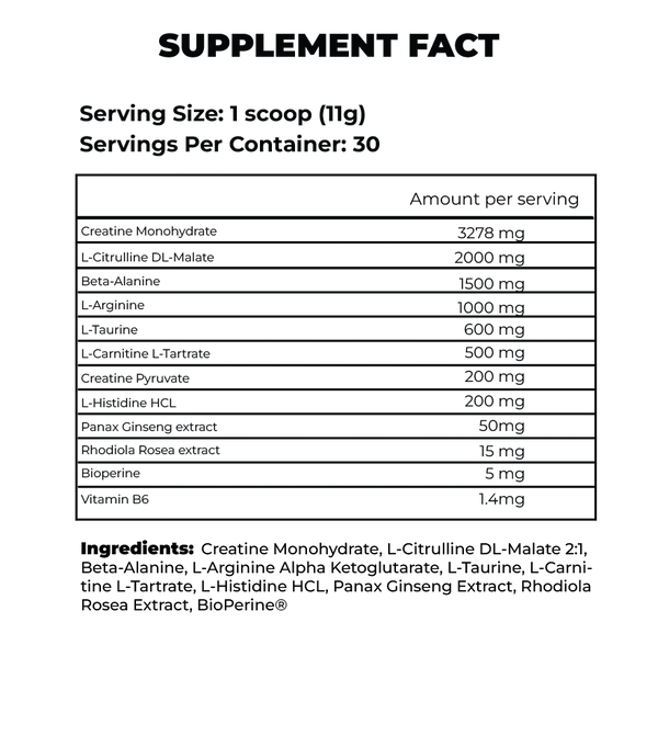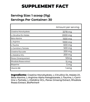 Galvanize Nutrition Fury Pump is a Caffeine-Free Pre-Workout that delivers energy and pump when you need it the most. The Creatine content enhances physical performance in successive bursts of short-term, high intensity exercise (with a daily intake of at least 3g), while Vitamin B6 has a synergistic impact through contributing to normal energy-yielding metabolism. This formula is also fortified with a number of herbal extracts such as: Beta-Alanine, L-Carnitine, and other Amino Acids.